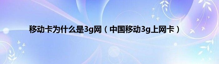 大家好,小问来为大家解答以上问题。移动卡为什么是3g网,中国移动3g上网卡这个很多人还不知道,现在让我们一起来看看吧!