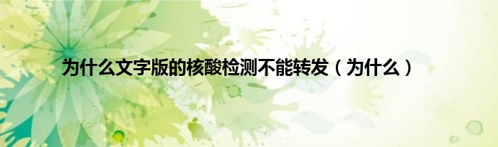 以上就是【为什么文字版的核酸检测不能转发,为什么】相关内容。