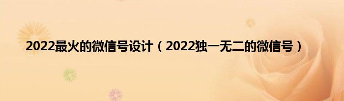 本文,2022最火的微信号设计,2022独一无二的微信号到此就分享完毕,希望对大家有所帮助。