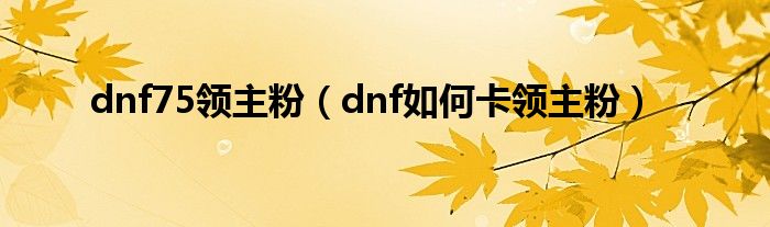 大家好,dnf75领主粉,dnf如何卡领主粉很多人还不知道,现在让我们一起来看看吧!