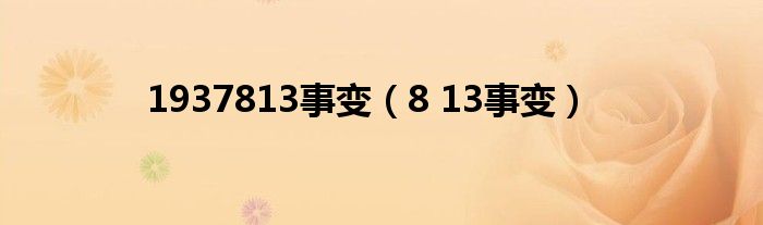 大家好,小问来为大家解答以上问题。1937813事变,8 13事变这个很多人还不知道,现在让我们一起来看看吧!