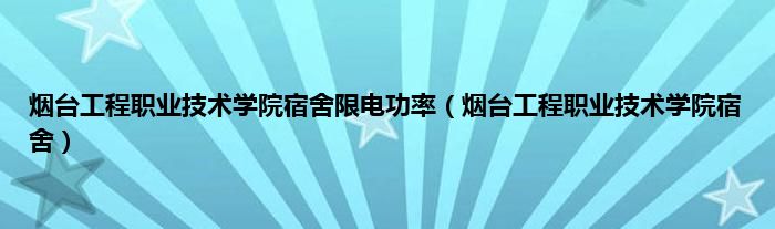 以上就是【烟台工程职业技术学院宿舍限电功率,烟台工程职业技术学院宿舍】相关内容。