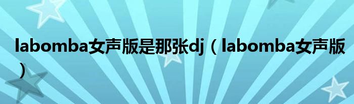 大家好,小问来为大家解答以上问题。labomba女声版是那张dj,labomba女声版这个很多人还不知道,现在让我们一起来看看吧!