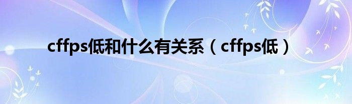 以上就是【cffps低和什么有关系,cffps低】相关内容。
