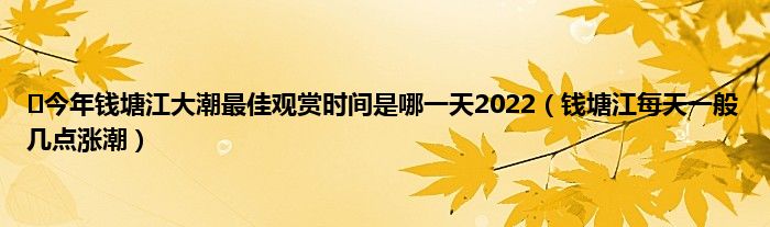 本文,今年钱塘江大潮最佳观赏时间是哪一天2022,钱塘江每天一般几点涨潮到此就分享完毕,希望对大家有所帮助。