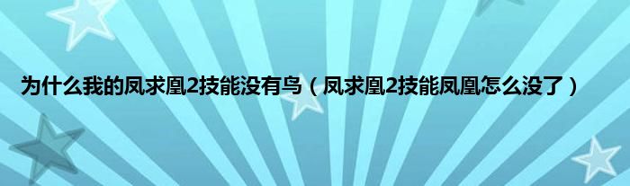 本文,为什么我的凤求凰2技能没有鸟,凤求凰2技能凤凰怎么没了到此就分享完毕,希望对大家有所帮助。