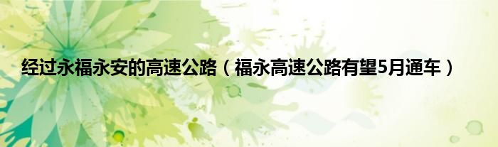 本文,经过永福永安的高速公路,福永高速公路有望5月通车到此就分享完毕,希望对大家有所帮助。