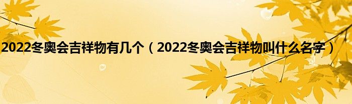 大家好,2022冬奥会吉祥物有几个,2022冬奥会吉祥物叫什么名字很多人还不知道,现在让我们一起来看看吧!