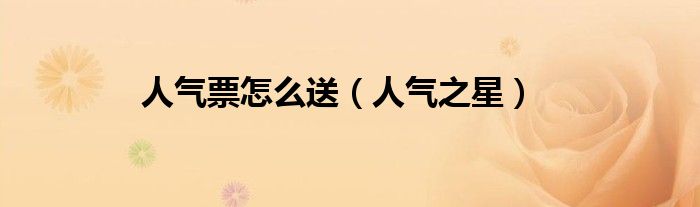 大家好,小问来为大家解答以上问题。人气票怎么送,人气之星这个很多人还不知道,现在让我们一起来看看吧!