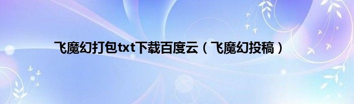 以上就是【飞魔幻打包txt下载百度云,飞魔幻投稿】相关内容。