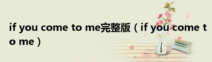大家好,小问来为大家解答以上问题。if you come to me完整版,if you come to me这个很多人还不知道,现在让我们一起来看看吧!