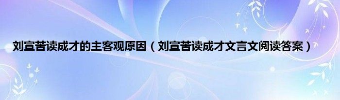 大家好,小问来为大家解答以上问题。刘宣苦读成才的主客观原因,刘宣苦读成才文言文阅读答案这个很多人还不知道,现在让我们一起来看看吧!