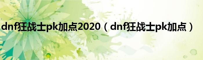 以上就是【dnf狂战士pk加点2020,dnf狂战士pk加点】相关内容。