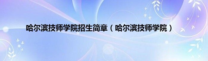 哈尔滨技师学院招生简章(哈尔滨技师学院)
