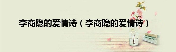 以上就是【李商隐的爱情诗,李商隐的爱情诗】相关内容。