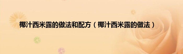 以上就是【椰汁西米露的做法和配方,椰汁西米露的做法】相关内容。
