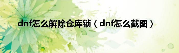 以上就是【dnf怎么解除仓库锁,dnf怎么截图】相关内容。