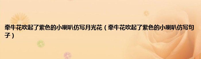 大家好,小问来为大家解答以上问题。牵牛花吹起了紫色的小喇叭仿写月光花,牵牛花吹起了紫色的小喇叭仿写句子这个很多人还不知道,现在让我们一起来看看吧!