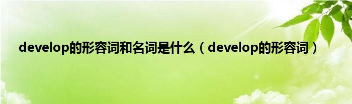 以上就是【develop的形容词和名词是什么,develop的形容词】相关内容。