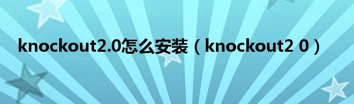 大家好,小问来为大家解答以上问题。knockout2.0怎么安装,knockout2 0这个很多人还不知道,现在让我们一起来看看吧!