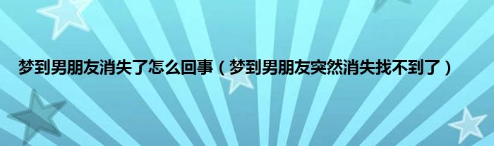 大家好,综合小编来为大家讲解下。梦到男朋友消失了怎么回事,梦到男朋友突然消失找不到了这个很多人还不知道,现在让我们一起来看看吧!