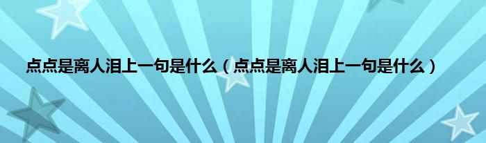 大家好,点点是离人泪上一句是什么,点点是离人泪上一句是什么很多人还不知道,现在让我们一起来看看吧!