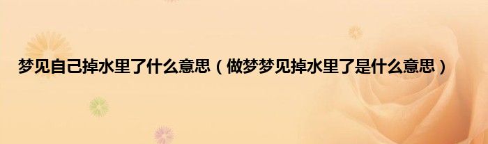 大家好,综合小编来为大家讲解下。梦见自己掉水里了什么意思,做梦梦见掉水里了是什么意思这个很多人还不知道,现在让我们一起来看看吧!