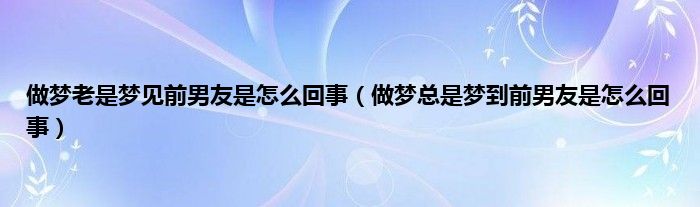 大家好,综合小编来为大家讲解下。做梦老是梦见前男友是怎么回事,做梦总是梦到前男友是怎么回事这个很多人还不知道,现在让我们一起来看看吧!
