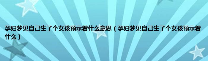 大家好,综合小编来为大家讲解下。孕妇梦见自己生了个女孩预示着什么意思,孕妇梦见自己生了个女孩预示着什么这个很多人还不知道,现在让我们一起来看看吧!