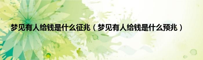 大家好,综合小编来为大家讲解下。梦见有人给钱是什么征兆,梦见有人给钱是什么预兆这个很多人还不知道,现在让我们一起来看看吧!