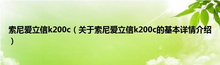 本文关于索尼爱立信k200c的基本详情介绍就讲解完毕,希望对大家有所帮助。
