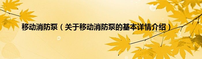本文关于移动消防泵的基本详情介绍就讲解完毕,希望对大家有所帮助。