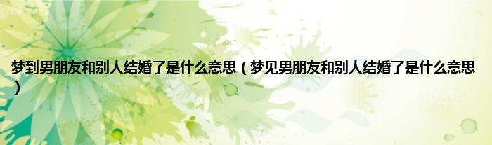 大家好,综合小编来为大家讲解下。梦到男朋友和别人结婚了是什么意思,梦见男朋友和别人结婚了是什么意思这个很多人还不知道,现在让我们一起来看看吧!