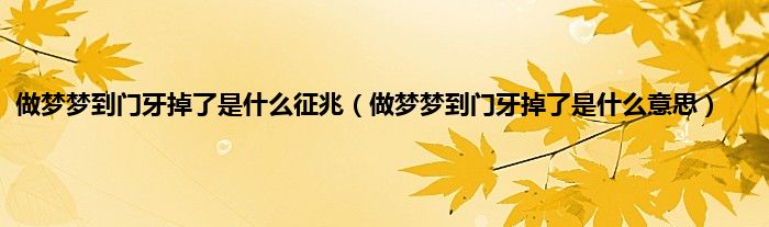 大家好,综合小编来为大家讲解下。做梦梦到门牙掉了是什么征兆,做梦梦到门牙掉了是什么意思这个很多人还不知道,现在让我们一起来看看吧!