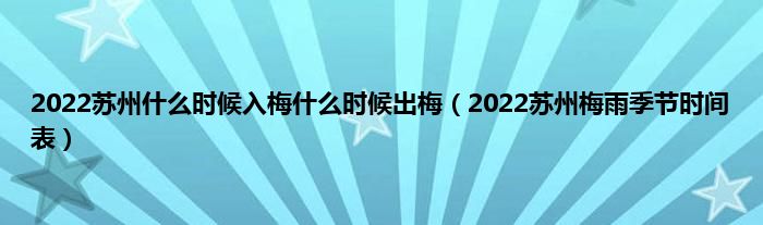 本文,2022苏州什么时候入梅什么时候出梅,2022苏州梅雨季节时间表到此就分享完毕,希望对大家有所帮助。