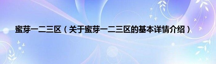 大家好我是小蝌蚪,蜜芽一二三区,关于蜜芽一二三区的基本详情介绍很多人还不知道,那么现在让我们一起来看看吧!