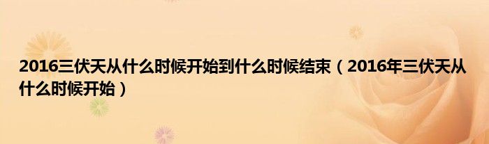 本文2016三伏天从什么时候开始到什么时候结束,2016年三伏天从什么时候开始到此分享完毕,希望对大家有所帮助。