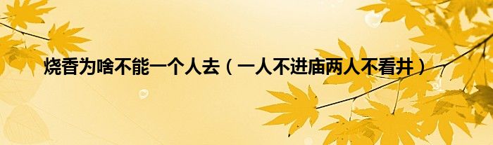本文烧香为啥不能一个人去,一人不进庙两人不看井到此分享完毕,希望对大家有所帮助。