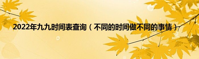 本文2022年九九时间表查询,不同的时间做不同的事情到此分享完毕,希望对大家有所帮助。