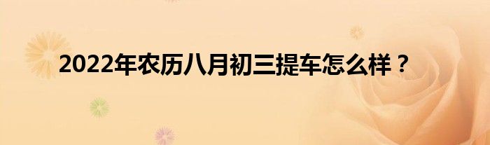 大家好,综合小编来为大家讲解下。2022年农历八月初三提车怎么样?这个很多人还不知道,现在让我们一起来看看吧!