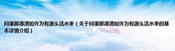 问渠那得清如许为有源头活水来(关于问渠那得清如许为有源头活水来的基本详情介绍)