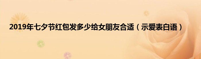 大家好,综合小编来为大家讲解下。2019年七夕节红包发多少给女朋友合适,示爱表白语这个很多人还不知道,现在让我们一起来看看吧!