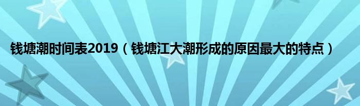 大家好,综合小编来为大家讲解下。钱塘潮时间表2019,钱塘江大潮形成的原因最大的特点这个很多人还不知道,现在让我们一起来看看吧!