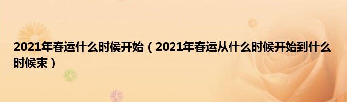 本文2021年春运什么时侯开始,2021年春运从什么时候开始到什么时候束到此分享完毕,希望对大家有所帮助。