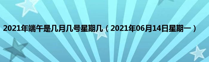 大家好,综合小编来为大家讲解下。2021年端午是几月几号星期几,2021年06月14日星期一这个很多人还不知道,现在让我们一起来看看吧!