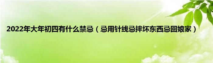大家好,综合小编来为大家讲解下。2022年大年初四有什么禁忌,忌用针线忌摔坏东西忌回娘家这个很多人还不知道,现在让我们一起来看看吧!