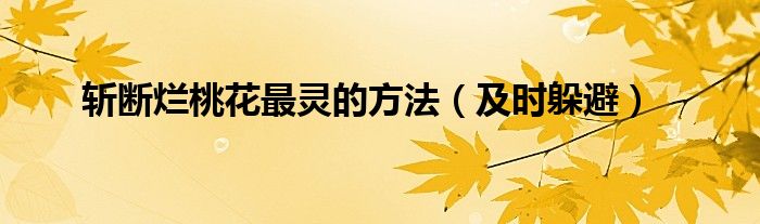 大家好,综合小编来为大家讲解下。斩断烂桃花最灵的方法,及时躲避这个很多人还不知道,现在让我们一起来看看吧!