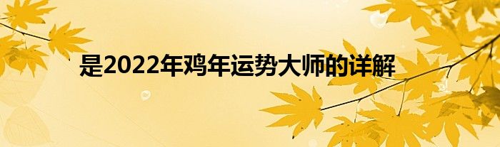 本文是2022年鸡年运势大师的详解到此分享完毕,希望对大家有所帮助。
