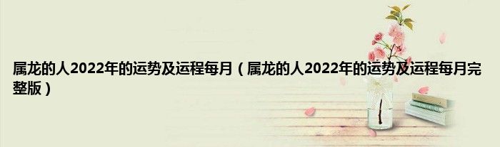 本文属龙的人2022年的运势及运程每月,属龙的人2022年的运势及运程每月完整版到此分享完毕,希望对大家有所帮助。