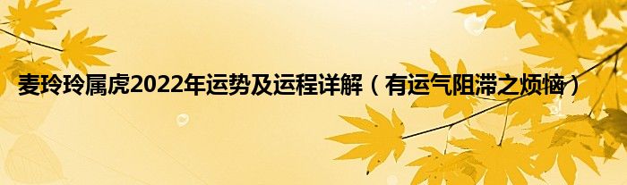大家好,综合小编来为大家讲解下。麦玲玲属虎2022年运势及运程详解,有运气阻滞之烦恼这个很多人还不知道,现在让我们一起来看看吧!